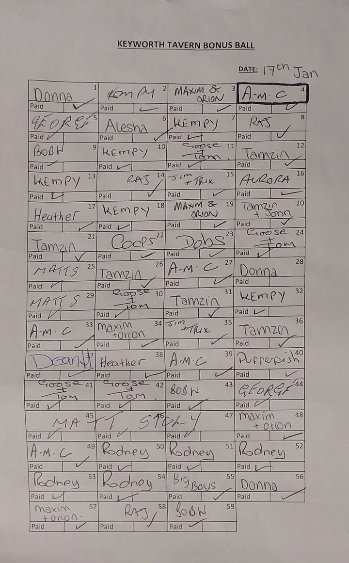 This week's winning Bonus Ball number is No.4 - Congratulations A.M.C!
