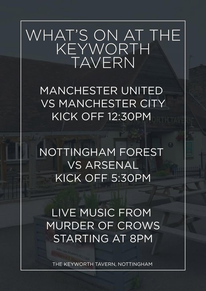 All showing LIVE at The Keyworth Tavern!