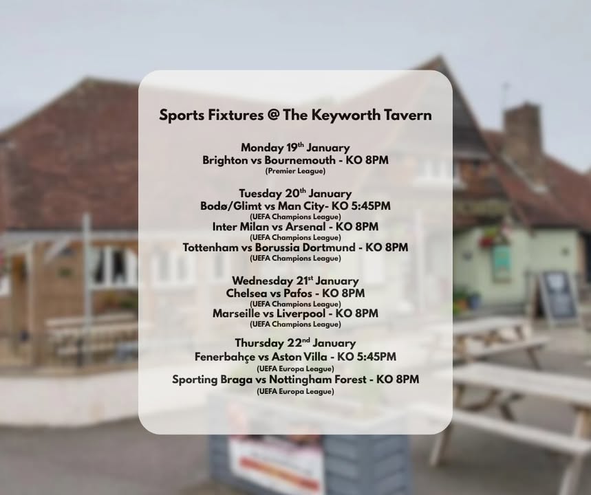 Plenty of exciting football to be shown LIVE at The Keyworth Tavern!
